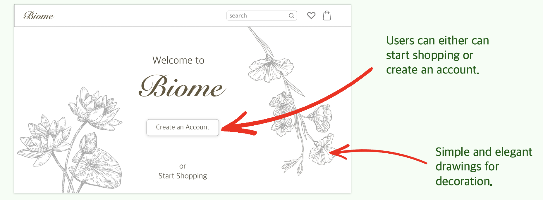For this assignment, I was required to design an ecommerce site similar to Anthropologie's Terrain brand.