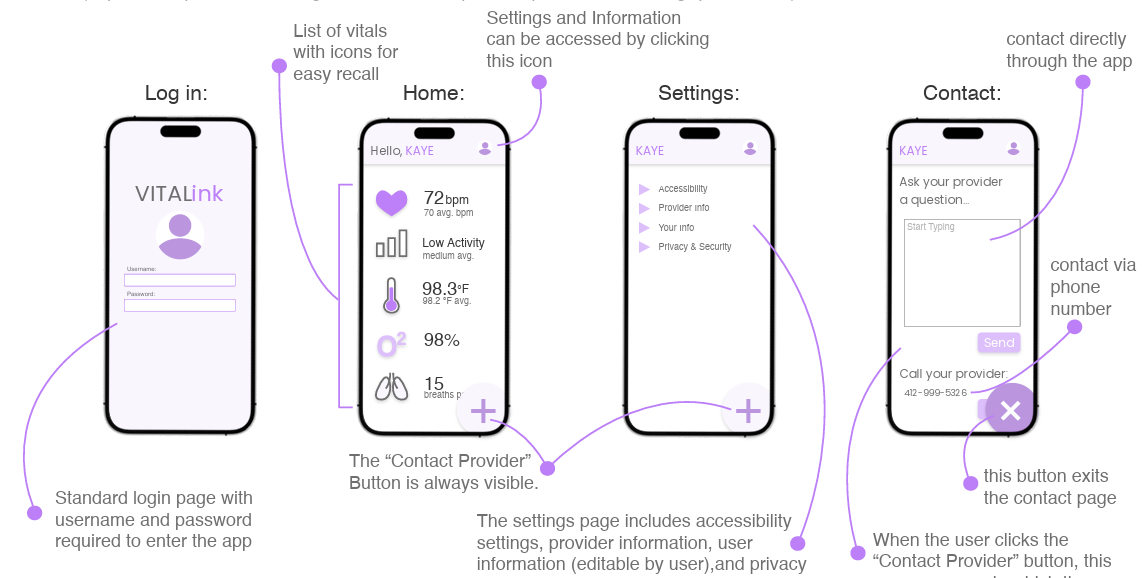 For this assignment, I was required to design a healthcare wearable that specifically uses a heart rate sensor. The use case I chose was a way for nurses to track elderly patient's vitals post-surgery.